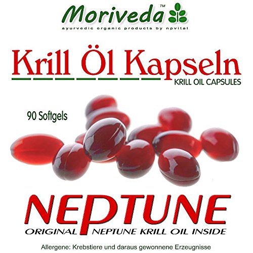 Krill oil capsules 180, 100% pure NEPTUNE premium krilloil - Omega 3,6,9 astaxanthin, phospholipids, choline, vitamin E - Brand quality by MoriVeda (2x90).