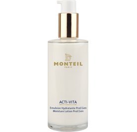 Monteil Moisture Lotion ProCGen 75 ml. This revitalizing moisturizing lotion is quickly absorbed by the skin and provides intensive care and vitality. The ProCGen complex reduces little crinkles caused by dry skin and makes the skin's surface soft and smooth. The skin is intensively supplied with vitamins. This light lotion is an ideal make up base. For dry and very dry skin.
